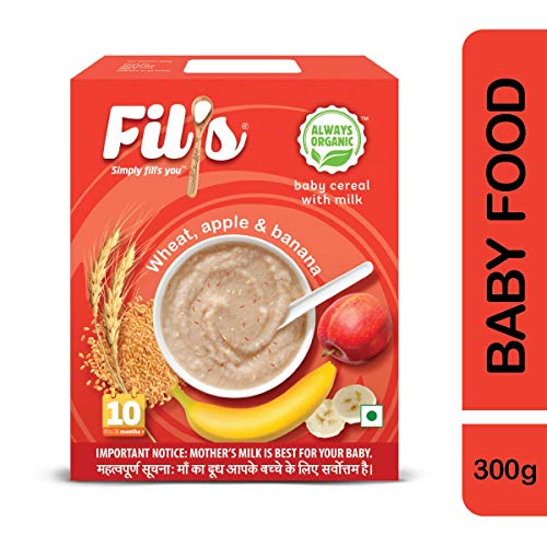 Specification: Fils Organic Baby Food Cereals With Milk-Wheat, Apple and Banana,10-24months+,300gm,Rs.1/gm, Instant Healthy Baby Food.